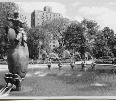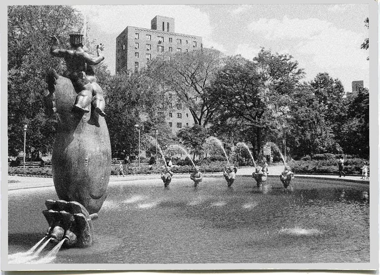 Parkchester, Bronx. A sprawling complex of brick apartments. Playgrounds and tennis courts. Schwin bikes everywhere. The Oval Fountain at the heart of baby carriages and bustling city dwellers. A Lowes movie house and Macy’s. Gargoyles fountains and gardens everywhere, a haven for the expanding middle class.